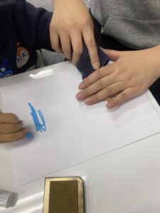 手をスタンプ台につけていると何やら不思議そうな顔をしていました