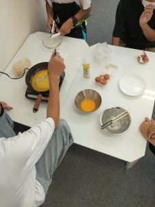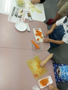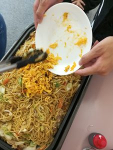 外の気温もますます暑い中、今日は室内でも熱々の「焼きそば作り」をしました。