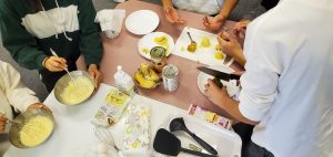 クレープ生地を、作るグループに分かれて行いました!!
