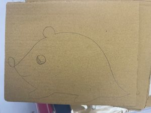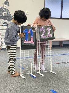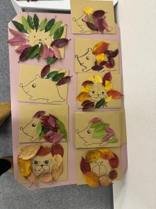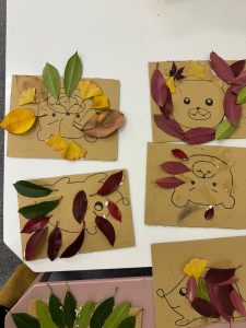 にみんなで落ち葉を使って針に見立てたり、たてがみに見立てたりして作りました。