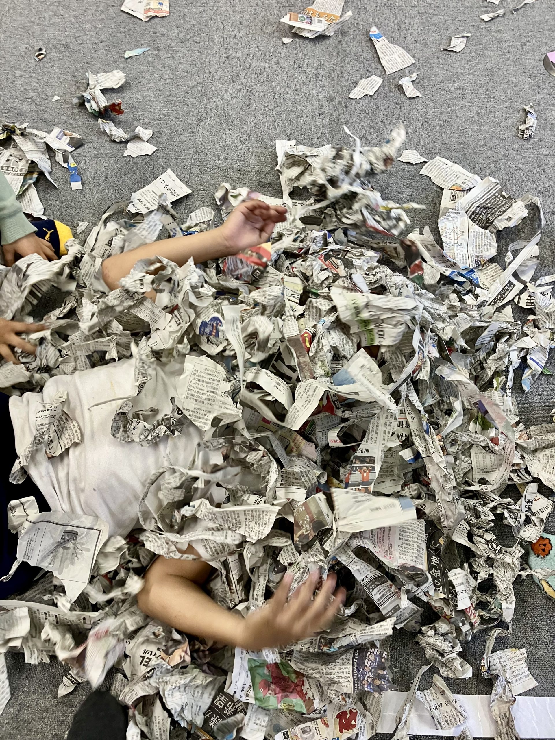 “リーダーさんに負けた人だけ新聞紙を折る”