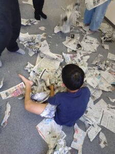 新聞紙あそびと言っても、みんなしっかり