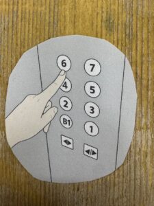 今日のぺったん役のSくんにエレベーターを押す係も任命しました。