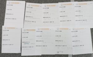 振り返りシートを準備したので まずは各々書いてもらいました。