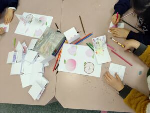 昨日もいたメンバーにより、続きを続行!完成させました 余った時間で糊をペタペタ🖌️桃の貼り合わせも行いました
